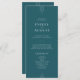 This simple art deco wedding program from the Everly Collection features a deep teal background, refined parisian typography, and delicate white line accents. It's modern, minimalist, and perfect for retro-inspired weddings.