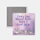 This lovely magnet features a bookshelf with lavender and green books and a vase of lavender flowers on either end. Typography reads "Every Day Should Start With A Good Book in a modern font. Background is a watercolor splash of pale lavender. This would make a lovely little gift for anyone who loves to read, whether it be a teacher, librarian, an author, family member or coworker.