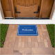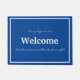 Plush door mat is shown in blue and has a white border and text. Text reads " Every day we rise," " Welcome" in bold print in centre and " we choose to serve the Lord our GOD".