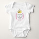 Cute BIBLE VERSE Baby Bodysuit, showing a crown with PINK laurel wreath. Inside is the inspirational quote EVERY GOOD AND PERFECT GIFT COMES FROM GOD, which is based on the Christian Scripture verse from James 1:17. The text is CUSTOMIZABLE so you can replace with text of your own choice. Also comes in BLUE.