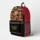 This custom Knapsack Bag features A golden firefighter stands in front of a red fire truck with flames in the background. symbolising bravery and heroism,