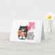 Celebrate the mum in your life with this adorable design featuring a cute grey cat showing it's love and appreciation for it's Meowmy with balloons, chocolates, and flowers.