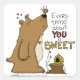 A cute bear stands near a beehive that is sitting on a stump while a bee sits on the tip of the bear’s nose. Woodland themed image with a pun will enlighten your heart. Original design by Christie Black of Creations from the Heart.