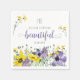 Napkins have lovely yellow and purple flowers, and a scripture verse from Ecclesiastes 3:11, "He has made everything beautiful in its time." Designed by Simply Scripture; elements from The Hungry Jpeg.