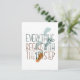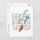 Hand lettering of a motivational text saying Everything Begins With The First Step and with footprints across the text, where the first footprint is accented with stronger colour.