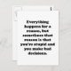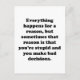 Everything happens for a reason, but sometimes that reason is that you're stupid and you make bad decisions.