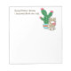 On this note pad, an adorable little tabby cat wears a pink bow collar and sits beside a blooming cactus house plant. The text at the side says "Everything I know I learned from my cat". Cute for any cat owner!