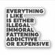 Everything I Like Is Either Illegal, Immoral, Fattening, Addictive Or Expensive Black & White Quote Saying Funny Typography