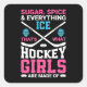 Hockey theme stickers for the hockey girl with hockey pucks, sticks and helmets with pink, white, and blue text that reads Sugar, Spice and Everything Ice That's What Hockey Girls Are Made Of!
