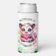 Cute monogrammed can cooler with cartoon opossums with possum inspirational quote puns. Cute pink possum in flowers. Background is sage green and pink.
