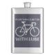 The product is a good size and came exactly as it was pictured. The lid is not attached to the flask, which could be dangerous on drunken nights... The print came out surprisingly well and looks very sharp. Would definitely recommend.