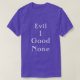 Make a bold, minimalist statement with this clean, typographic design featuring the stacked phrase “Evil / 1 / Good / None” in crisp serif lettering. The high-contrast layout feels modern, a little mysterious, and just the right amount of provocative—perfect for anyone who loves wordplay, philosophy vibes, or simple designs that still turn heads.