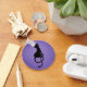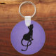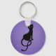 Evil cat keychain with a beautiful illustration of a gracious evil black cat with glowing eyes on a night watch in the dark purple haze.