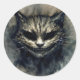 Evil Cat Smiling Watercolor Art Classic Round Sticker