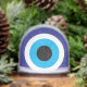 Evil Eye Blue Mati personalised snow globe gift. Greek / Turkish symbol for luck and protection. Add your own custom text.