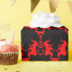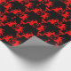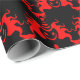 The seamless pattern consists of evil genie hair with flaming red hair and forms the a black body. The head is black with an evil red grin and a striped black; and red dunce cap. The elements of the of the images flow together making it feel a bit strange.