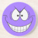 The purple background colour can be personalised for this evil genius cartoon face sandstone coaster. To change the colour or add text, use the customise it option.