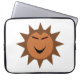 This awesome laptop bag features a cartoon of an evil brown hedgehog curled up in a ball with sharp brown prickles surrounding it. It has demonic red eyes and a menacing black grin. This simple design will appeal to children and adults alike.