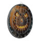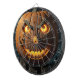 Sinister smile: A menacing jack-o'-lantern stares out from a spooky graveyard scene, its fiery glow piercing the darkness of a full-moon Halloween night.