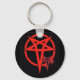 An inverted red pentagram on a black background with a smaller pentagram with evil written inside it.