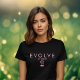 This "Evolve, Go Vegan" t-shirt features a design with pink foil effect.