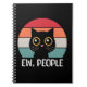 Funny, colourful retro style design with cute black cat and colourful striped background decoration and "Ew, People" text design