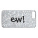 This is a fun iPhone 7 case with a sparkly silver background, accented with the cute saying Ew! Note: no glitter or sequins are used in making this case, the sparkly background is a photo illustration.