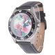 My husband loves the watch, he likes the dial, the graphics, the band, and it keeps perfect time.