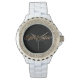The Women's Rhinestone White Enamel Watch catches people's eyes. The image and Parkour name make it stand out against the black background. The watch's material is Bezel metal with crystal, an Alloy face, and an Enamel Alloy strap. This particular watch is for ages 13 and up.
