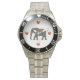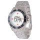 Has heft and feel of expensive stainless steel quartz watches. Good band with safety catch.  I removed links, which is easy because engraved arrows show direction to push the linking pins. As always by this seller, the image (a railroad logo) is a perfect reproduction of my emailed image, and is precisely spaced and aligned.