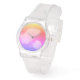 I only have one complaint. I ordered the watch with clear case and strap, and what was sent was white case and strap. I'm going to keep it because 1) it looks very nice in white, and 2) it would take too long to get a replacement made and sent in time for my occasion. Aside from the mix up with the color, the watch does look very good in white. The purple dial is actually sparkly which did not show in the online images. That was a nice surprise. If you like Swatch watches this is very similar to those. It's 33.6mm in diameter, 10.5mm thick, and 40.6mm lug to lug. Stainless steel case back says 3ATM/30m WR, so no swimming or showering or submerging this one. If you like Woodstock, this is a great choice.