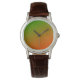 I like the illustrative watch with the lady on it. It is a great reminder that I am blessed and it has a very sturdy leather band. The colors are true and vibrant. Love the color of the Leather also. Very nice.