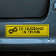 "EX-HUSBAND IN TRUNK" car bumper sticker in yellow. Have some fun out there. Fully customisable text.