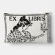 Art nouveau bookplate of a lady sharpening a pen for writing