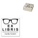 A stylish Ex Libris Stamp with a Hipster/Retro style glasses motif. With Ex Libris written in a stylish bold san serif font reminiscent of eye test charts and underlined with a black line to balance the design. The name is written beneath the line in a serif italic font. Change the name to personalise.