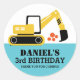 Construction excavator cartoon for kids birthday party. Suitable for boys who loves truck, bulldozer, excavator, crane and more big transports. Cute stickers for children birthday party favour or bridal shower. Customise the wording for any occasion with children.