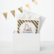Dirty 3rdy Birthday favor bag featuring an excavator and a yellow and black striped pattern..