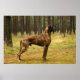 A flawless Great Dane standing at attention in the woods. The dog's coat colouring appears to act as camouflage in this picture.