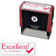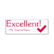 This positive rubber stamp design features the motivating feedback message "Excellent!" and a personalised teacher's name. It also features a decorative check mark icon. It could be used by a school teacher, educator, instructor, or tutor when marking assignments, to acknowledge that a student has done well.
