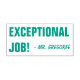 This motivating rubber stamp design features the motivational message "EXCEPTIONAL JOB!" and a personalised teacher name. It could be used by a teacher or educator when marking assignments, to acknowledge that the student has done well.