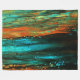 * Abstract Unique Artsy LARGE FLEECE BLANKET with the brush strokes of turquoise aqua and orange.