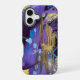 Exciting blue, purple, and gold abstract art iPhone 16 case