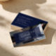 Luxury real estate business card template for realtors, real estate agents, brokers, and high-end professionals. This design features a full photo background on the front, allowing you to showcase your best property listing, lifestyle portrait, or brand image to create instant visual impact. A modern navy blue overlay adds contrast giving you a clean space for your company logo, business name, and location. Your portrait photo is displayed on the right.