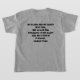 Child's shirt with quote "Excuses are nails used to build a house of failure" on the front and Psalm 73:26 on the back.