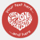 "This love is exhausting". Vector text shaped like heart, customisable colour. Two custom text fields on circle.