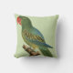 Tropical parrot art throw pillow with pale green background. Customise your background colour. An accent pillow with a burst of colour of the tropics. Great for bird lovers.
