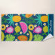 This is custom personalised beach towel featuring cute vibrant colourful tropical fruits with pineapple, papaya, dragon fruit, mango, banana, watermelon, and lemon with tropical leaves on dark background. You can change the name on the design using personalise button.