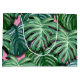Large gift bag made with an image of big leafy lush green tropical leaves with a splash of pink behind. Painted with acrylics and digitised.