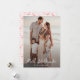 Pink photo Mele Kalikimaka card featuring a photo on the front and a pink pattern with palm leaves and pink flamingos at the back.