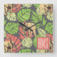 Exotic Jungle Leaves And Elephants | Monogram Square Wall Clock